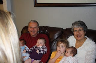The 3 new cousins. Even though Elodie is only 2 months older than Cambry she looks so much bigger. It's amazing what a difference 2 months can make when they are so little. It was so great that Cat could visit with Elodie; we loved meeting Elodie-she is such a cutie!